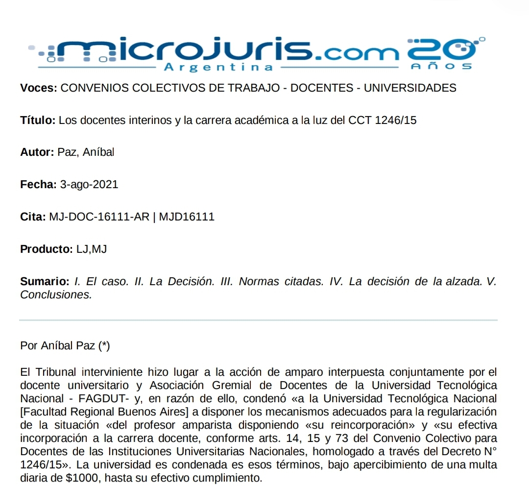 Interpretación del Convenio Colectivo de Trabajo de los Docentes Universitarios